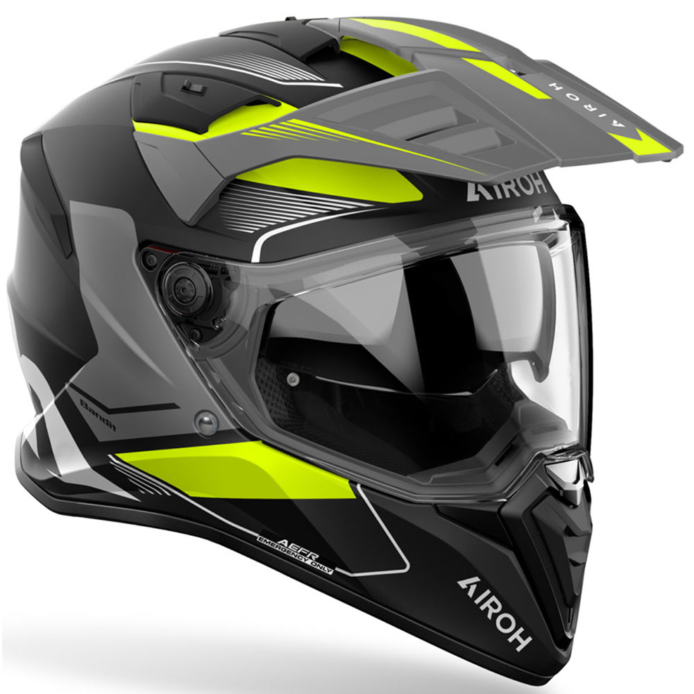 Airoh Bandit - это чрезвычайно универсальный шлем двойного назначения, который можно использовать как с козырьком, так и без него в зависимости от условий поездки. Конструкция шлема 2 в 1, позволяет всегда быть готовым и быстро реагировать на любые приключения в полной безопасности, не жертвуя внешним видом.