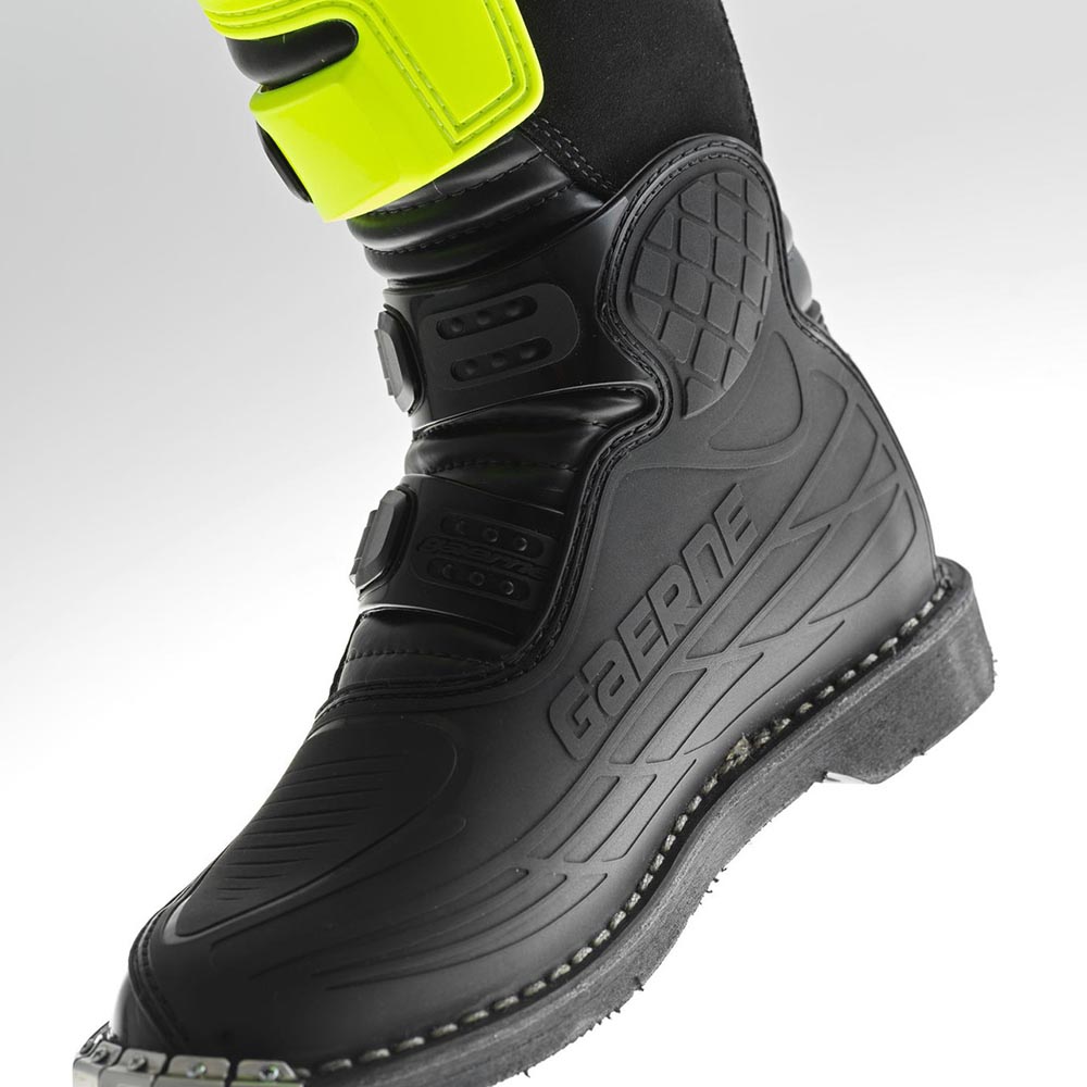 Прочная подошва сделана по технологии Gaerne Goodyear Welted, что повышает срок службы и позволяет легко заменить её при износе. Модель имеет CE-сертификацию по EN 13634:2017 и производится в Италии.