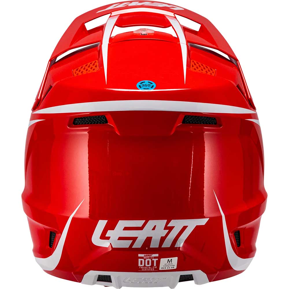 Шлемы Leatt Moto 3.5 имеют отличительную функциональную особенность конструкции 360° Turbine Technology с защитой головы от косых ударов. Шлем изнутри оснащен турбинами, которые представляют собой диски, изготовленные из энергопоглощающего материала, предназначенного для того, чтобы голова слегка перемещалась внутри шлема во время аварии, уменьшая вращательную, прямую и отклоняющую энергию удара. Эта технология имеет два ключевых преимущества: уменьшение вращательного ускорения головы и мозга и поглощение энергии при ударе на уровне сотрясения мозга. Шлем Leatt Moto 3.5 сертифицирован как по стандарту безопасности ЕСЕ, так и DOT.